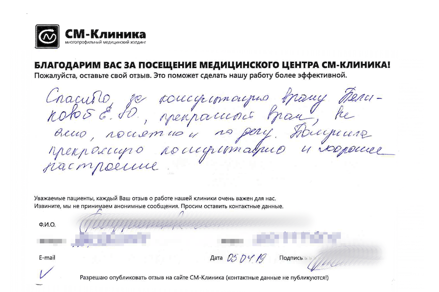 Если вы передумали, отпишитесь, пожалуйста, от приема с помощью Личного кабинета или по телефону +7 (812) 435-55-55.